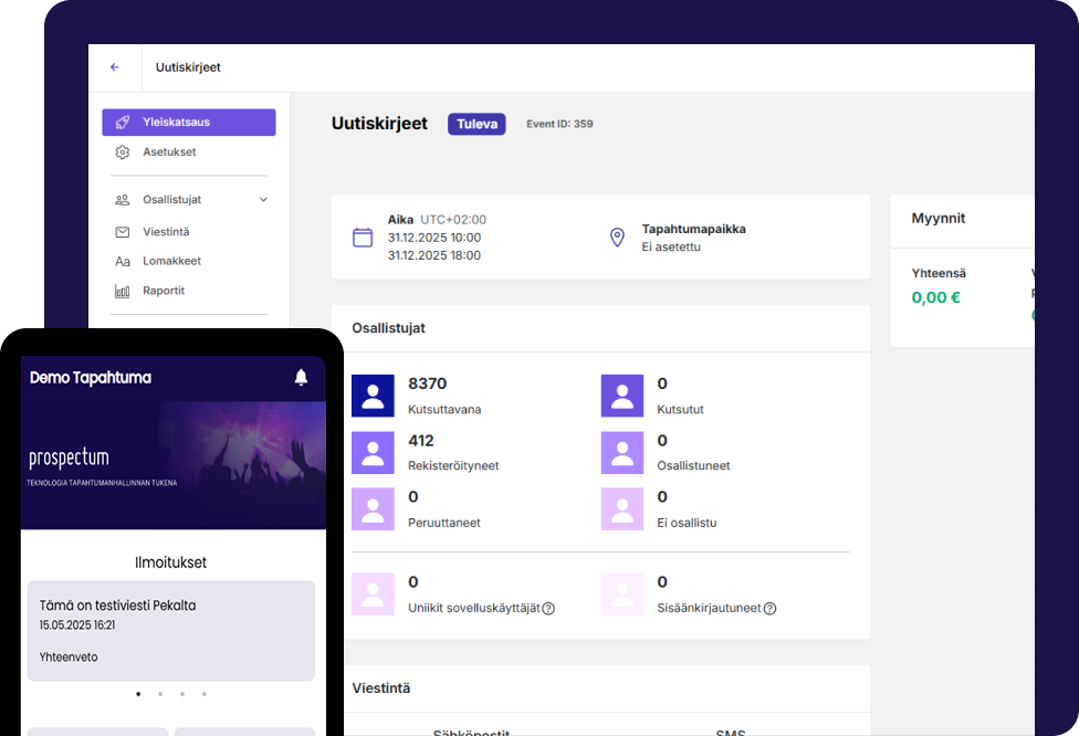 Nimikorttien ja lippujen jakelu on mahdollista sähköisenä, Eventos App-tapahtumasovelluksessa ja/tai tulostettuna.